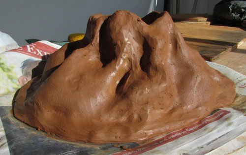 Once the clay was ready I got my hands dirty and hand-built a couple of volcanoes, and weren’t they disappointing! They looked more like power station cooling towers than volcanoes.