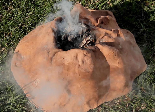 The day went on, the kiln burned and smoked and we decided to let it burn down overnight and I would come back the next day to see the results. Amazingly 24 hours later the kiln was still hot and smoking.