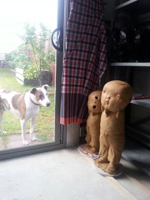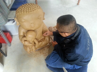 Unexpectedly, I got lots of new ideas through simply engaging with the process of playing with clay and making things alongside fellow artists Somchai and Naidee Changmoh who was also working in the studio at the same time.