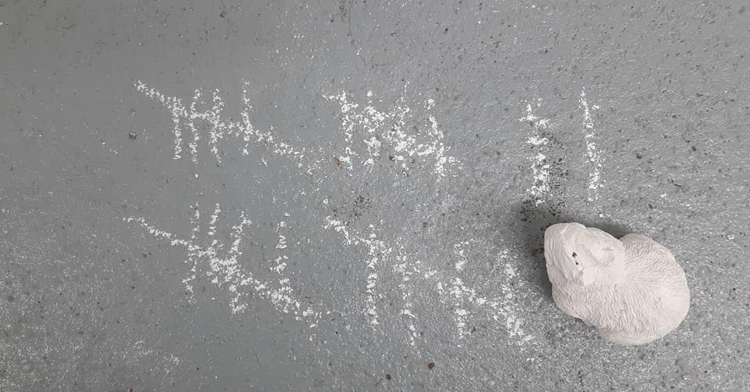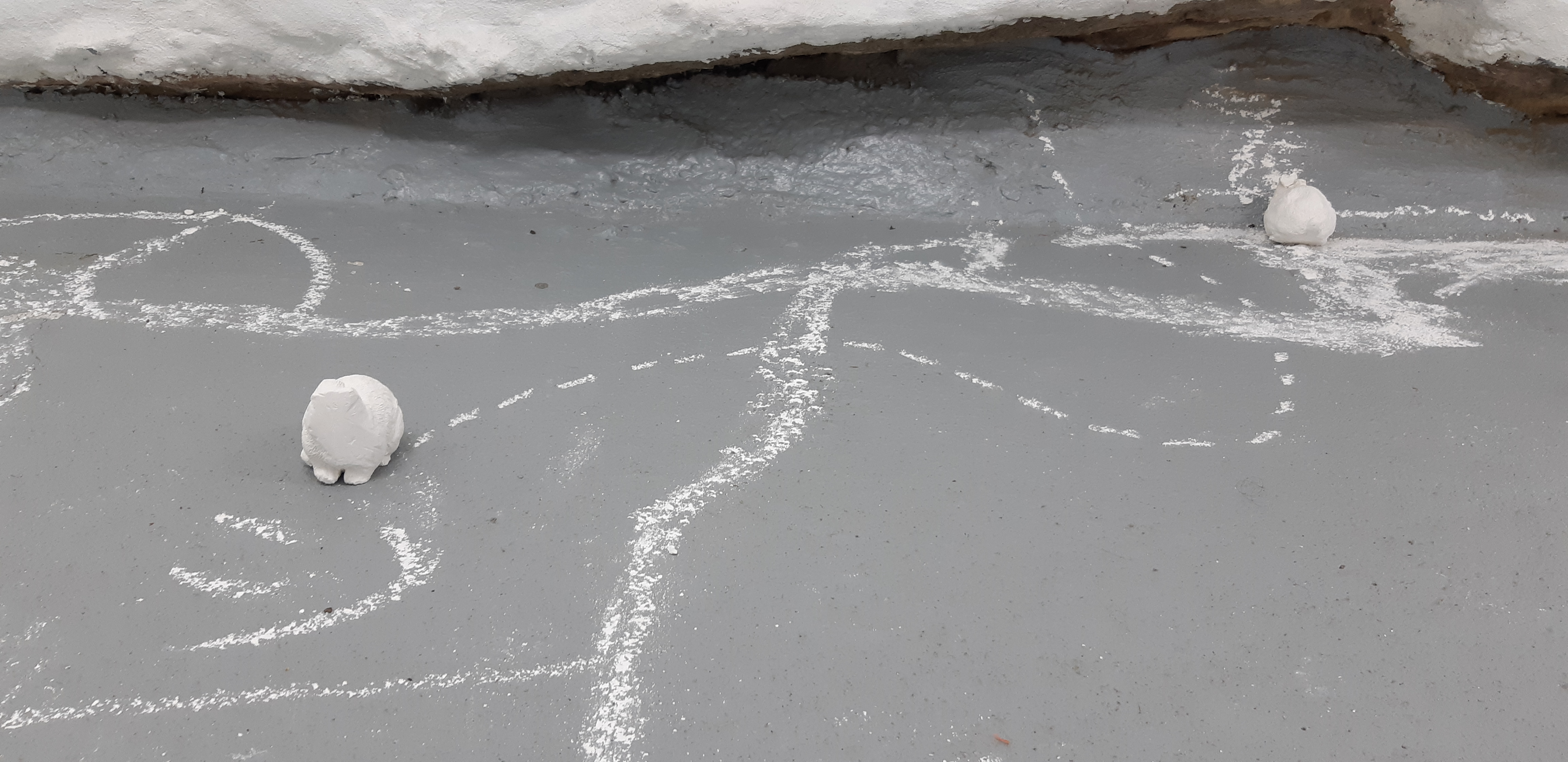 Foothold (Airspace, 2020) emerged from reading about a major transcribing project to identify and record deteriorating headstones at Rookwood Cemetery in Sydney. The project was led by the Australian Society of Genealogists (ASG) over eleven years (1981-92). Personal recollections of the methods used to render the weathered and collapsed headstones legible, influenced the material sensibility of this work. Techniques employed by the ASG included pouring water over tombstones to make indents standout and the use of mirrors to cast shadows to make inscriptions easier to read. Rubbing headstones with chalk was another method. Gypsum is a key ingredient to make chalk and can damage a headstone due to the expanding and contracting qualities of the material. Interested in the tension between the human quest for preservation and the processes of decay, I turned my attention to an animal largely considered an accelerator to the decomposition of burial sites.