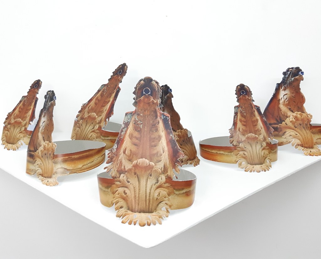 The gargoyles featured in Frazer’s Party Hats (2020) are captured from Frazer Mausoleum, located in Rookwood Cemetery, Sydney. This sandstone gothic cathedral-in-miniature was once the family vault of John Frazer, an Irish immigrant to Australia who became an influential Sydney merchant.